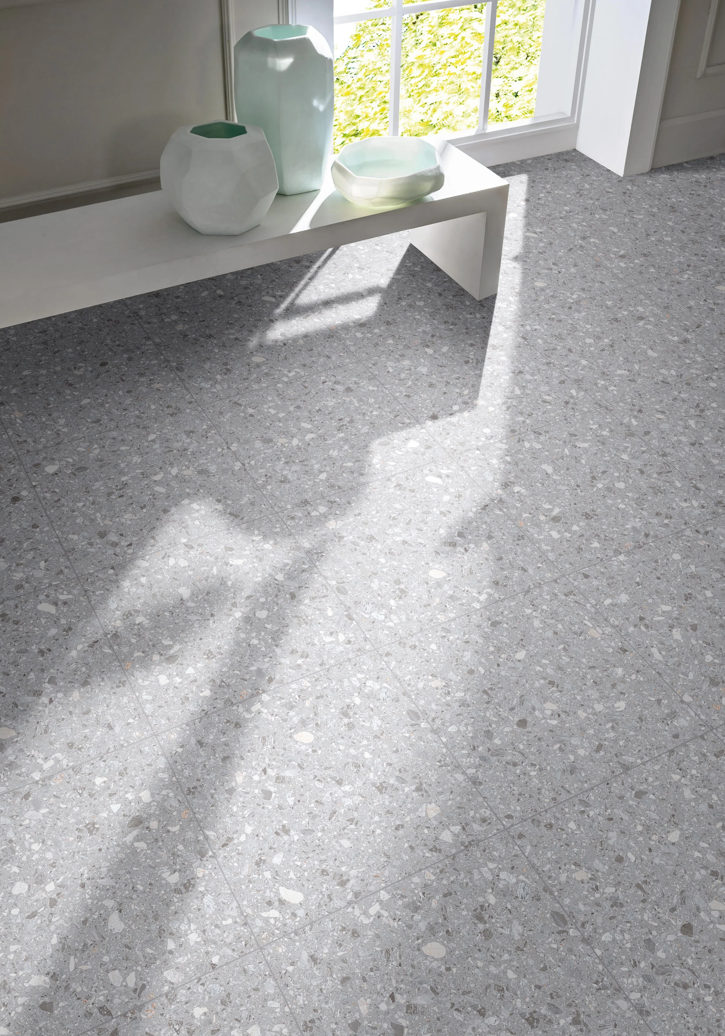 Our Lakeshore Terrazzo porcelain tile brings a crisp, modern aesthetic to any space with its sophisticated grey aggregate pattern. Capturing the timeless appeal of classic terrazzo with a contemporary cool-toned palette, it is an ideal choice for high-end retail showrooms or commercial projects. Engineered for both floors and walls, this tile combines high durability with the ease of maintenance that only porcelain provides. A preferred selection for retail flooring stores and developers, this tile is currently stocked in our Toronto warehouse and ready for distribution.